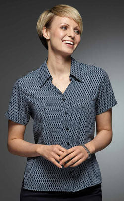 Short sleeve V-neck blouse in 'eclipse' design printed soft touch crepe.