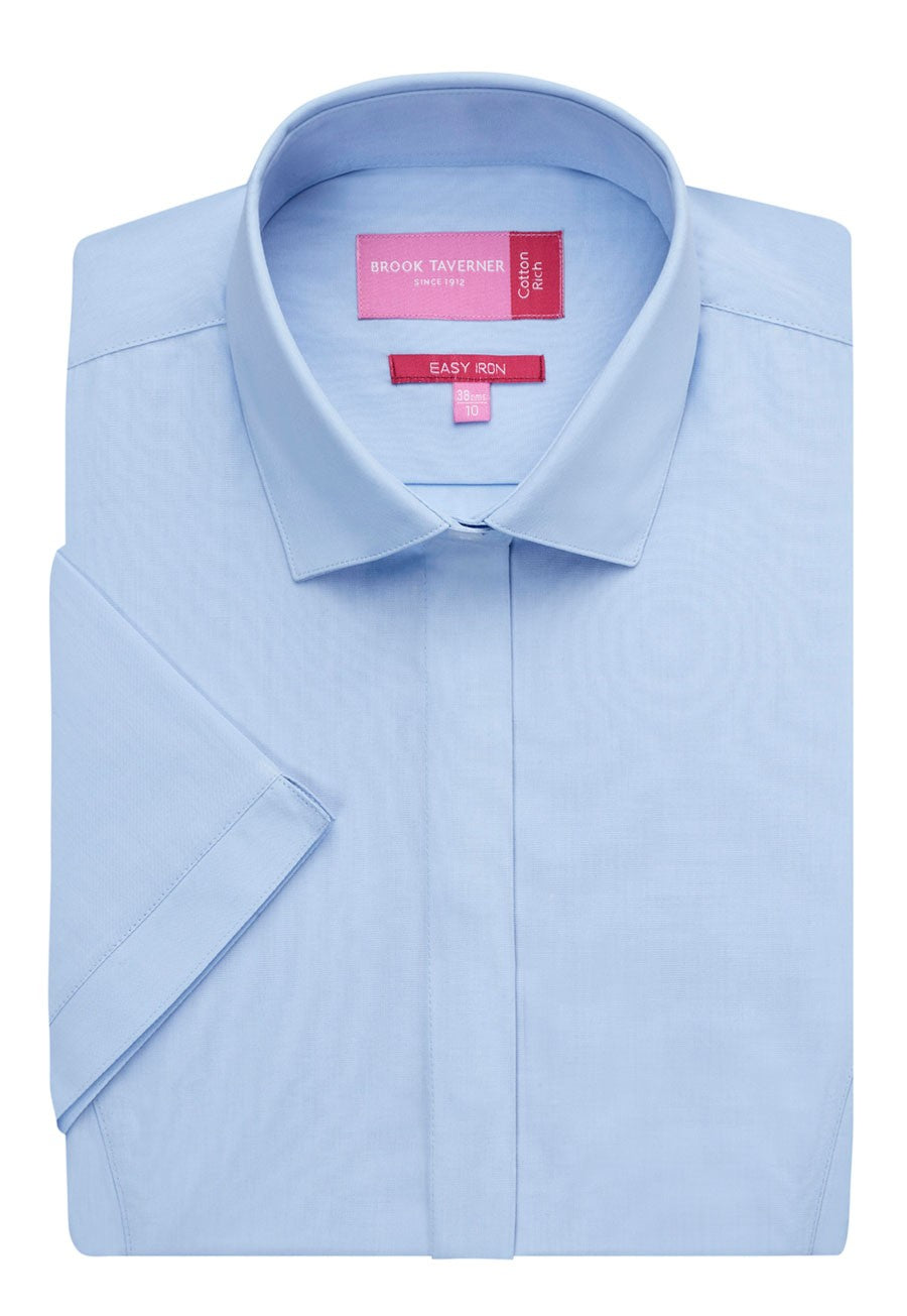 Cotton rich, short sleeve ladies blouse, easy care and easy iron practicality.