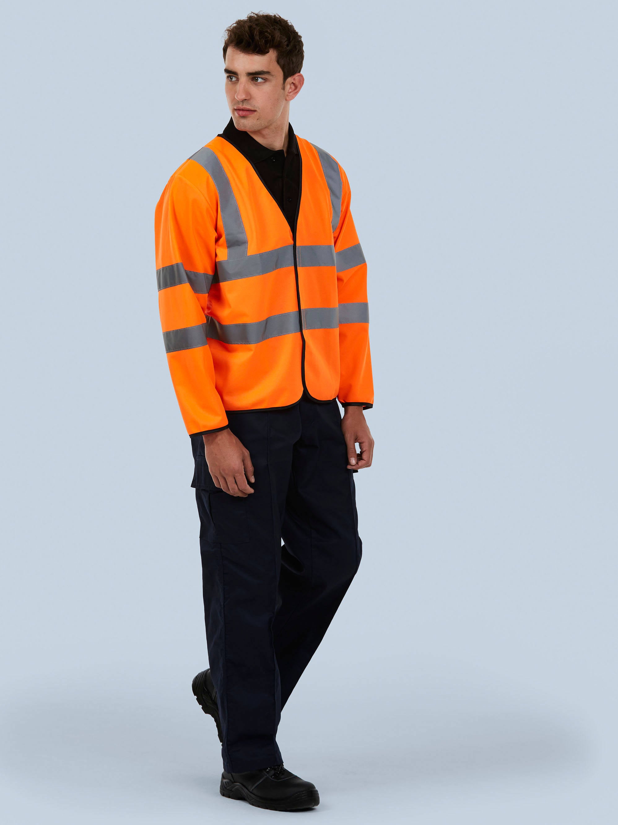 2 band and 2 brace retro reflective strips (50mm wide) stitched-on around the body, arms and 1 over each shoulder.